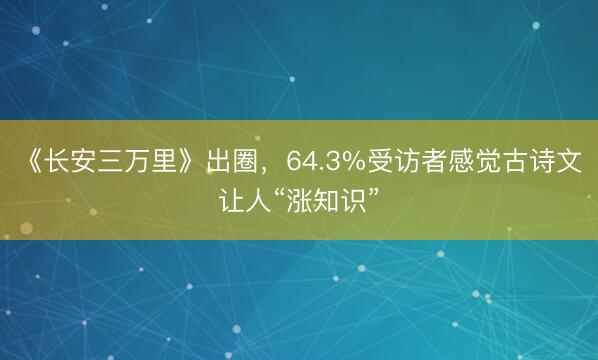 《长安三万里》出圈,64.3%受访者感觉古诗文让人“涨知识”