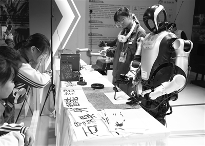在2026北京国际科幻与未来产业博览会现场呦女稀缺资源网站在线观看,一款机器人在展示书写毛笔字。 资料照片